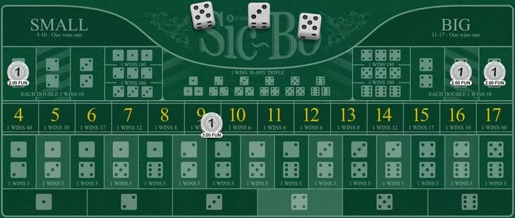 และสำหรับผลตอบแทนที่จะได้รับ อย่างเช่น กลยุทธ์เดิมพัน 9 เราอธิบายไว้ว่าคุณจะได้รับผลตอบแทน 21 หน่วย หากแต้มรวมกันของลูกเต๋าออกมาเป็น 9 นั่นแปลว่าถ้าคุณกำหนดให้ 1 หน่วยเดิมพันเท่ากับ 10 บาท คุณจะได้รับผลตอบแทน 210 บาทนั่นเอง (10*21 = 210)